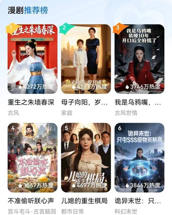 也因此,AI漫剧并非在分食真人短剧的存量,而是切入了真人拍摄成本高、风险大甚至无法实现的领域——超现实、二次元、科幻及克苏鲁题材,从而激活了年轻人等增量受众。
