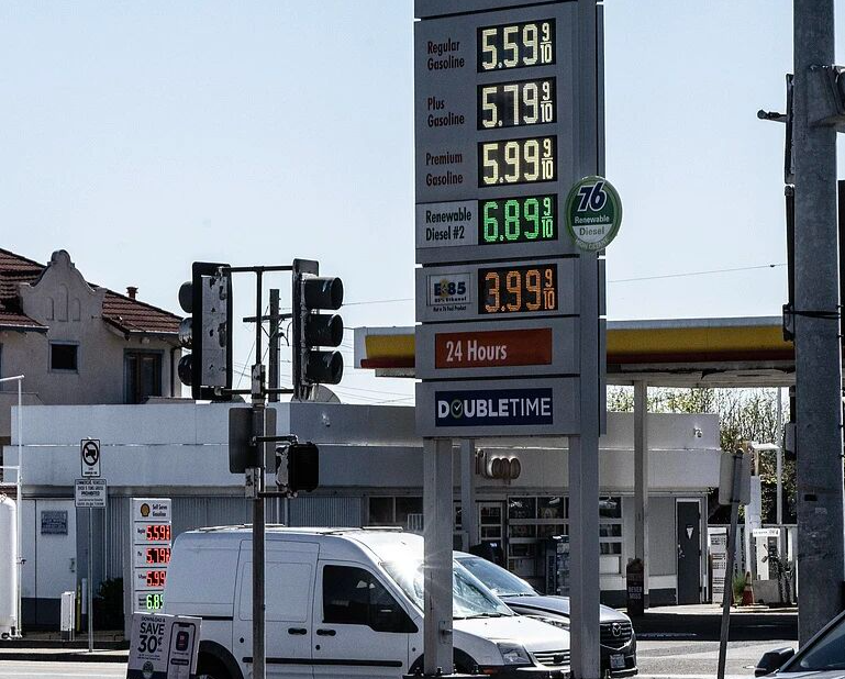 3月7日,美国加油站的汽油价格逼近每加仑6美元